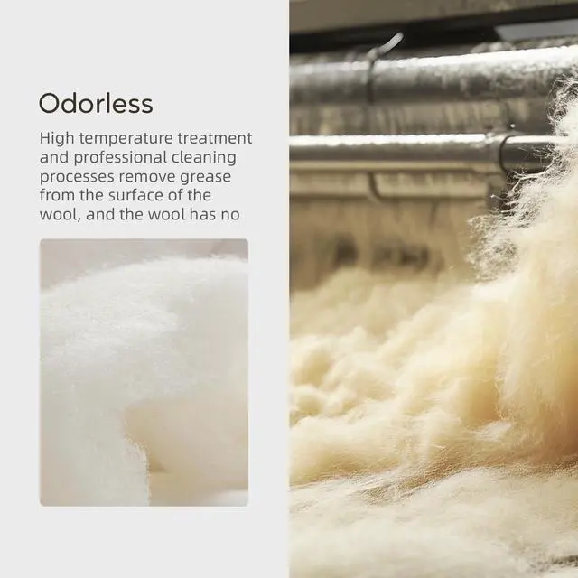 - Our thick wool blanket is made with 100% natural Australian Merino wool filling, with an average diameter of no more than 22 microns (600GSM). The production process includes three washes, significantly improving odor and softness.