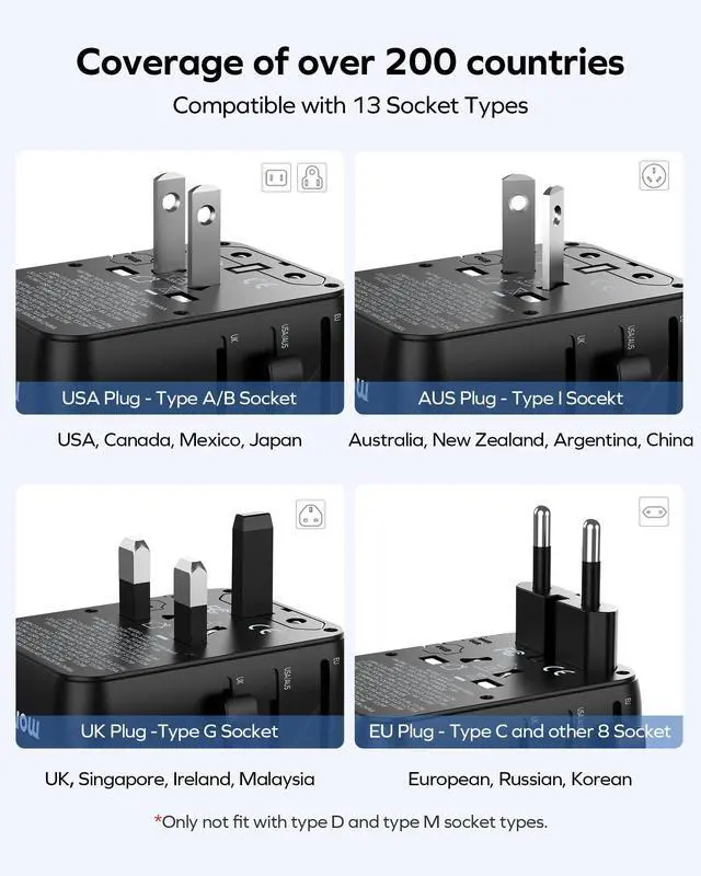 - Safety travel adapter - MOMAX multi-conversion plugs are ROHS, CE and FCC certified and are made of GaN-cooled and fireproof PC material with multiple protection functions (overheat, overcurrent, overcharge, short circuit protection, overpower protection, overvoltage protection, overdischarge protection) and a built-in 10A fuse to ensure safety during use. [Please note that our adapter does NOT convert voltage]