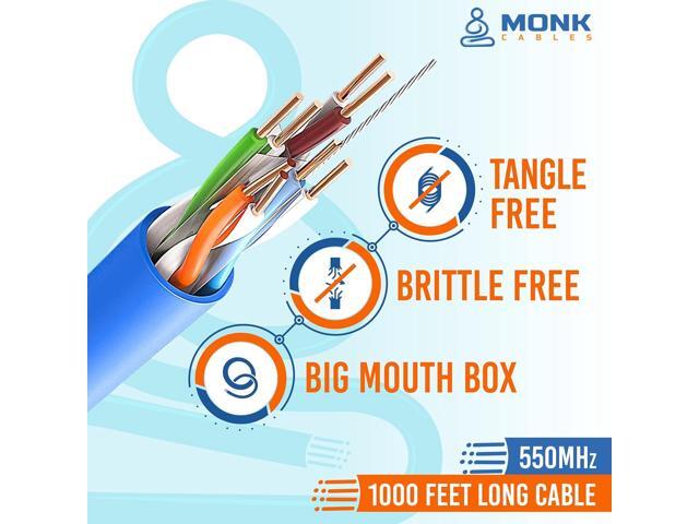 BRITTTLE - FREE & EASY - TO - WORK - WITH : Our cable comes packaged in a hassle-free & tangle-free easy-pull box | The whole 1000 feet (305 meters) of the cable has running "ft" count after every foot which makes measuring the cable extremely easy.