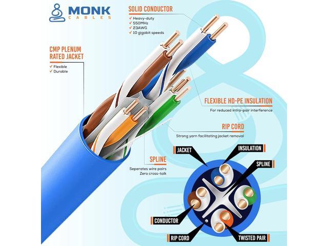 REMARKABLE PERFORMANCE & DURABILITY : Our RoHS compliant (CCA) CAT6 Plenum 1000ft cable is 23AWG with 4 pairs (8 conductors) | It produces a stronger signal, along with improved conductivity, compared to any other cable in the whole market | Suitable for 10 gigabit ethernet | Supports PoE & PoE+ up to 60W