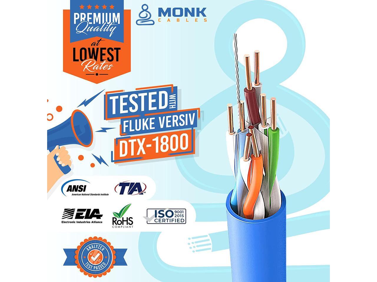 HEAVY - DUTY QUALITY 100% GURANTEED : Each & every of our cables whole 1000ft length is individually tested with a FLUKE DTX-1800 VERSIV CABLE ANALYZER to ensure customer satisfaction, consistent quality & compliance with TIA/EIA 568.2C standards