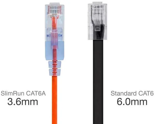 Monoprice SlimRun Cat6A is a small cable with big performance. With a cable diameter of almost half a standard Cat6A cable, SlimRun Cat6A is easier to route and saves valuable space in high density environments, such as data centers and telecommunications rooms. With SlimRun Cat6A, you can fit more cables in the same space, saving you the time and cost of expanding or replacing cable pathways.