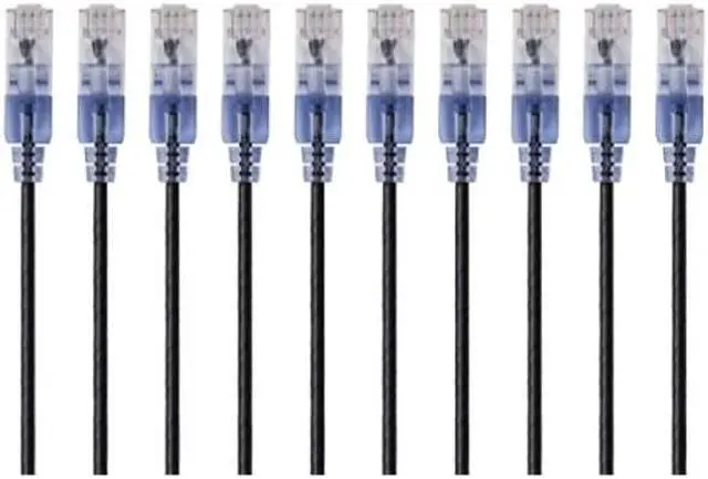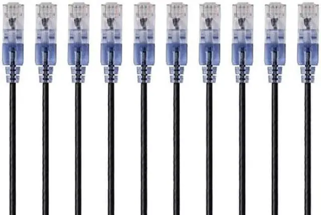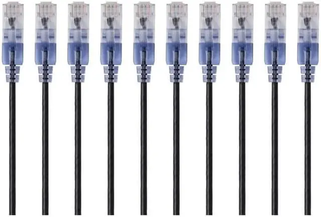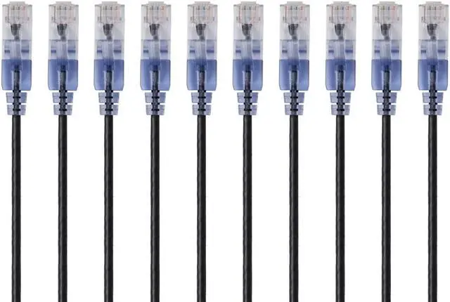 Monoprice SlimRun Cat6A Ethernet Patch Cable - Network Internet Cord - RJ45, 550Mhz, UTP, Pure Bare Copper Wire, 10G, 30AWG, 1ft, Black, 10-Pack