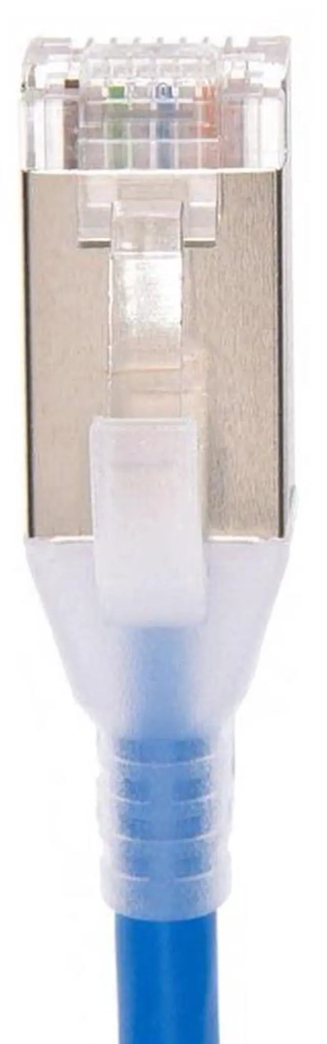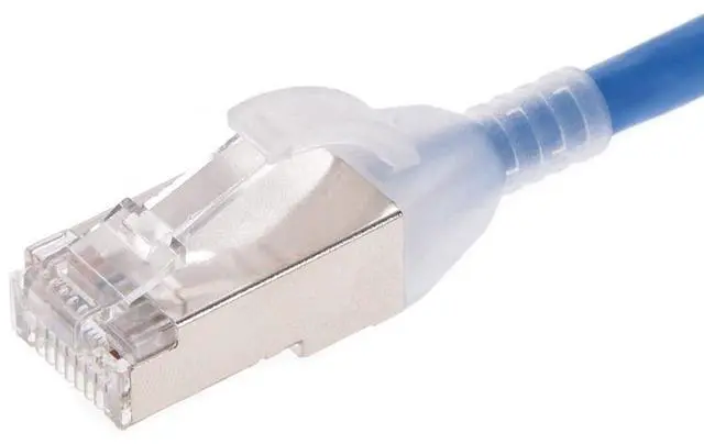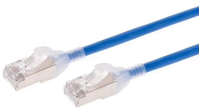 Monoprice SlimRun Cat6A 30AWG S/FTP Ethernet Network Patch Cables provide exceptional frequency characteristics and data transfer speeds in a smaller form factor, designed for high density data environments. SlimRun Cat6A cables are component tested, which provide optimized performance over channel rated in wall patch cables. The ultraslim 0.18" diameter 30AWG cable and narrow boot design reduces congestion in high density spaces, making them ideal for data centers and server rooms.
