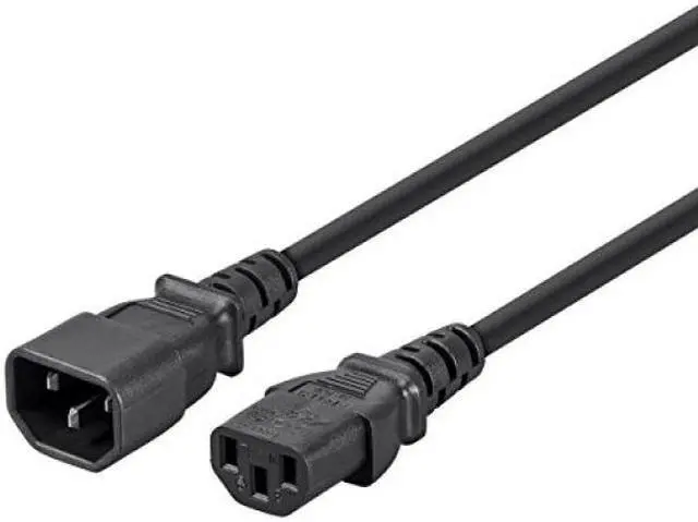 Save an AC power outlet by connecting your computer monitor to the computer power supply or extend a cable with an IEC 60320 C13 connector on one end. This cable features a female IEC 60320 C13 connector on one end and a male IEC 60320 C14 plug on the other end. Simply mate the male C14 connector to another cable with a female C13 connector. Alternatively, mate the male C14 connector to the C13 panel connector on a computer power supply then mate the female C13 connector to a male C14 connector on a monitor or monitor AC power adapter.