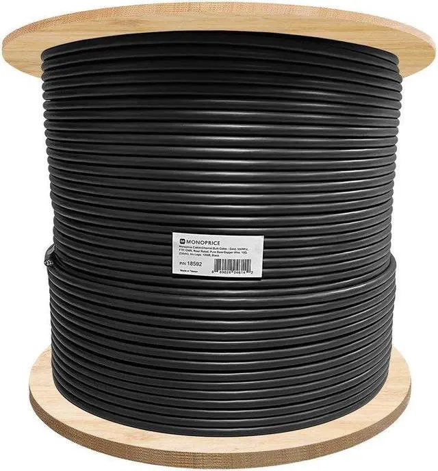 Monoprice's 23AWG Cat6a 650MHz FTP Solid, Riser-Rated (CMR) Bulk Pure Bare Copper ethernet cable is premium, high-speed cabling designed for use in 10GBase-T (10Gbps) network environments. Constructed using 23AWG solid, pure bare copper conductors with a CMR-rated PVC jacket, it exceeds TIA/EIA 568-C. 2 standards and is safe for use in the Riser spaces of commercial class buildings. FTP cables are a hybrid between shielded (STP) and unshielded (UTP) type cables, incorporating an overall foil shield, while leaving the twisted pairs unshielded. This cable is UL-listed and RoHS compliant.