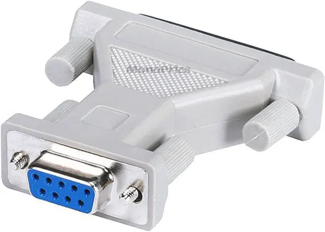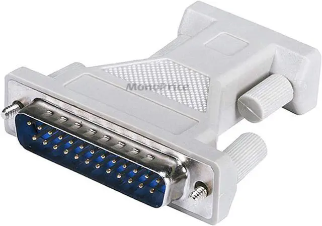Serial (DB9) to Parallel (DB25) connection adapter. *Monoprice continually strives to improve its product line to bring our customers the best products available. Therefore, changes may be made to listed specifications without prior notice. Item received may not match photo or specs shown.