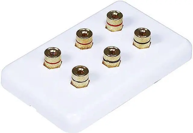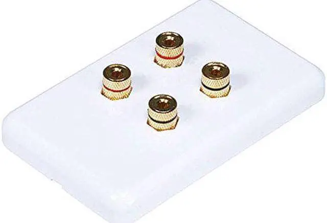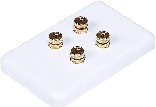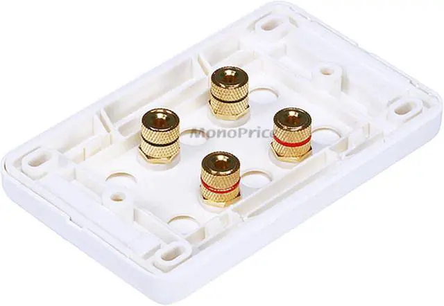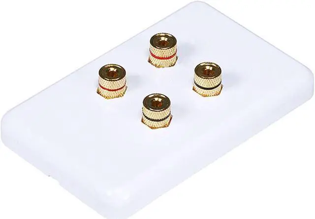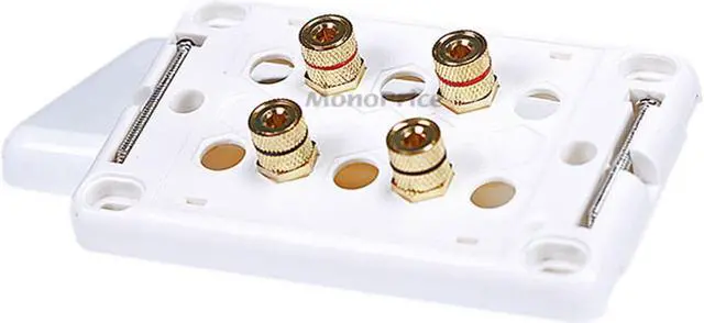 Wall plate with high quality gold plated binding posts for speakers. Can be used with banana plugs, spades, or bare wire. Same type of connector front and back. No soldering required. Corrosion resistant gold plated connectors. * Not compatible with PID# 2944 or 2945 banana plugs. This product can either be used with banana plugs (product ID 2801 or 2943) or it can accept bare wire connections on both the front and rear of the plate. *Monoprice continually strives to improve its product line to bring our customers the best products available.