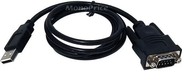 The USB-to-Serial converter cable allows you to connect an RS232 serial device to your PC through the USB 2.0 port with up to 230 Kbps data transfer rate. This 3 foot long cable has a DE9 (aka DB9) male connector (serial) on one end and a USB A male connector on the other.
