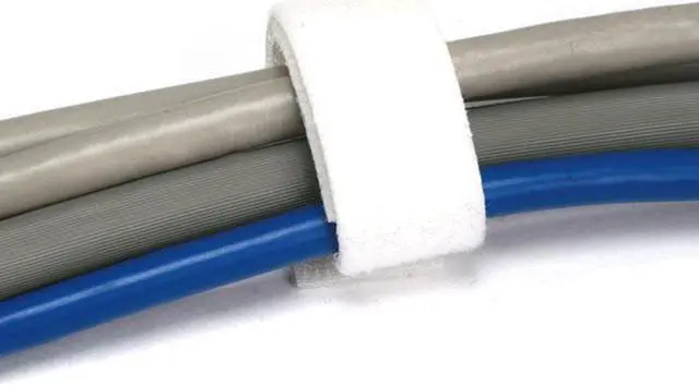 Organize that tangled mess behind your computer desk or home theater rack with simple hook & loop fastening cable ties. This giant roll can be cut to whatever length is necessary to strap your cables together. Double sided, one side hook, the other side loop. Just wrap around and it will fasten on to inself. Simple to use, reliable and durable. Available in a variety of colors. Use color codes to organize your bundles.
