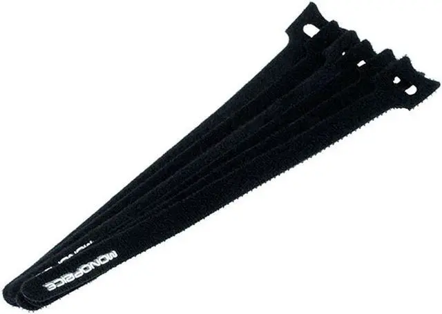 Organize your wires and cables with reusable Hook and Loop Cable Ties from Monoprice. These cable ties are made of a self-attaching hook and loop material, popularized by the NASA space program. These ties measure 9in in length and include an eye hole in the tail, allowing the tie to be attached to a cable or hung from a hook. The pack includes 50 pieces.