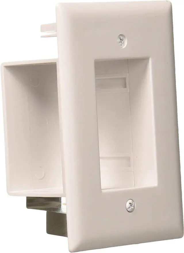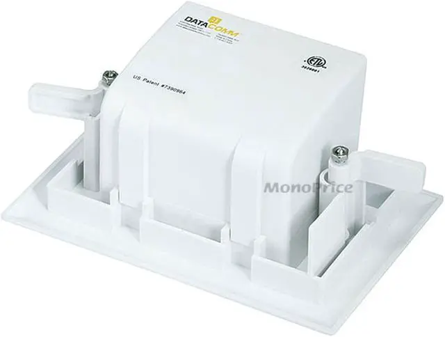 Monoprice is proud to carry a line of low voltage cable pass through wall plates with an "easy mount" design that does not require a work ring or low voltage gang box inside of the wall for installation. The wall plates feature a unique design with tabs on the sides that fasten tightly against the back of a drywall mounting surface providing a clean looking installation without the hassle of installing a gang box or work ring. The design also allows for additional versatility as the wall plates can either be installed vertically or horizontally on the wall.