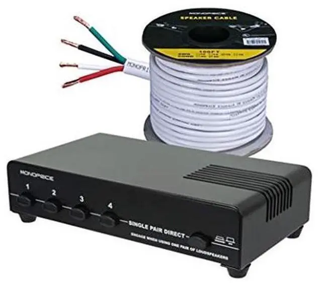 Distribute your music to every room in your home with this 4-channel speaker selector from Monoprice! This 4-channel speaker selector allows you to distribute your audio signals to up to four different speaker zones. An optional impedance protection circuit ensures that impedance seen by your amplifier remains constant, no matter how many speakers are in use. This switch can support up to 70 watts per channel with the protection circuit enabled or up to 140 watts per channel without the protection circuit in place.