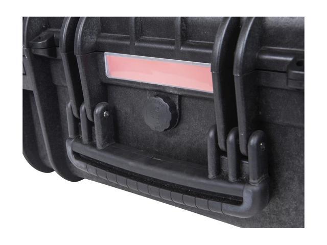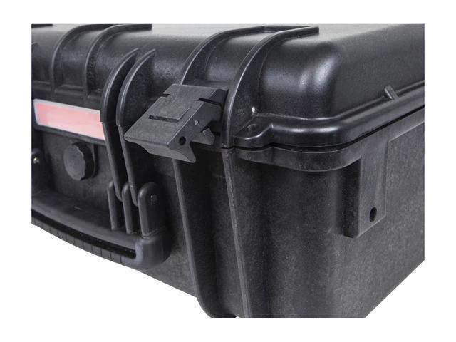 - Black. Shockproof design with fully customizable foam interior. Seal design provides IP67 level protection. Weight: 12.8 lbs.