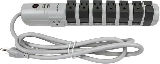 Unlike ordinary surge protector power strips, this surge protector features six outlets that can rotate 180° for use with AC power adapters, ensuring that all outlets are usable, regardless of what is plugged into them.
