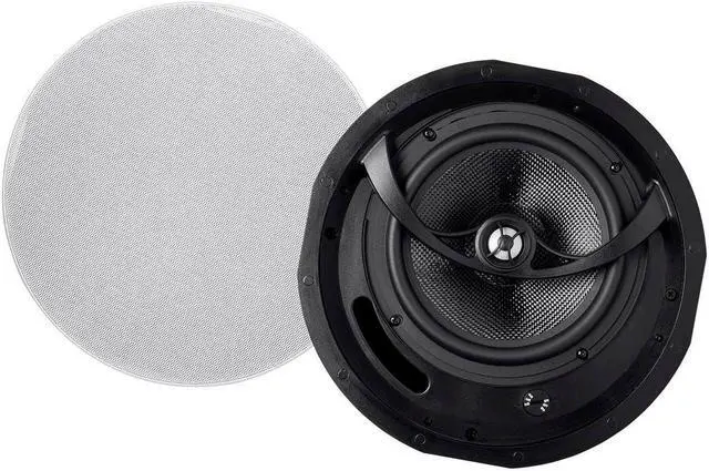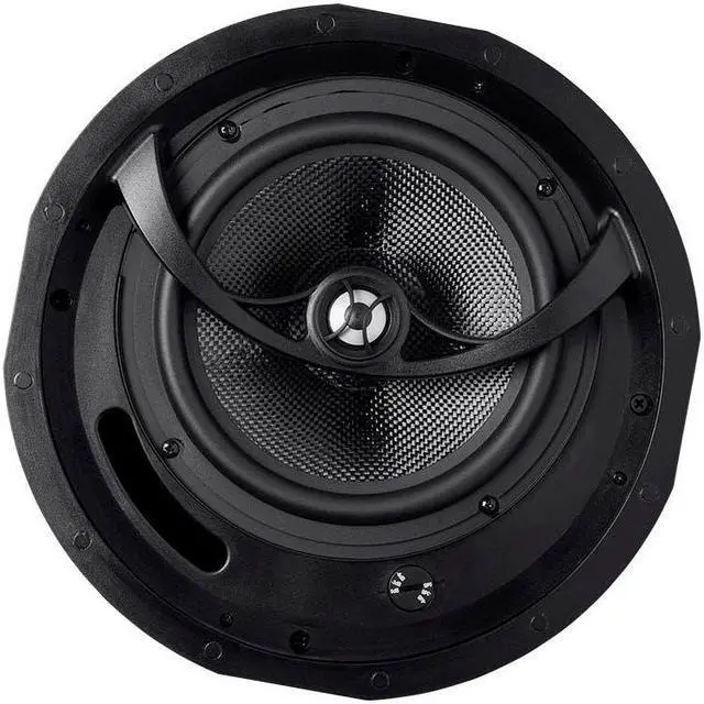 This carbon fiber in-ceiling speaker is the perfect combination of performance and style. The use of carbon fiber for the woofer means that the speaker can hit harder, go lower, and handle more power with significantly less distortion than conventional drivers. The silk dome tweeter produces clean, crisp, and clear highs and mids. You can fine tune the blend of sound using the built-in high frequency attenuator in case the sound is too bright. The metal grille can be painted to match your ceiling and attaches easily using magnets.