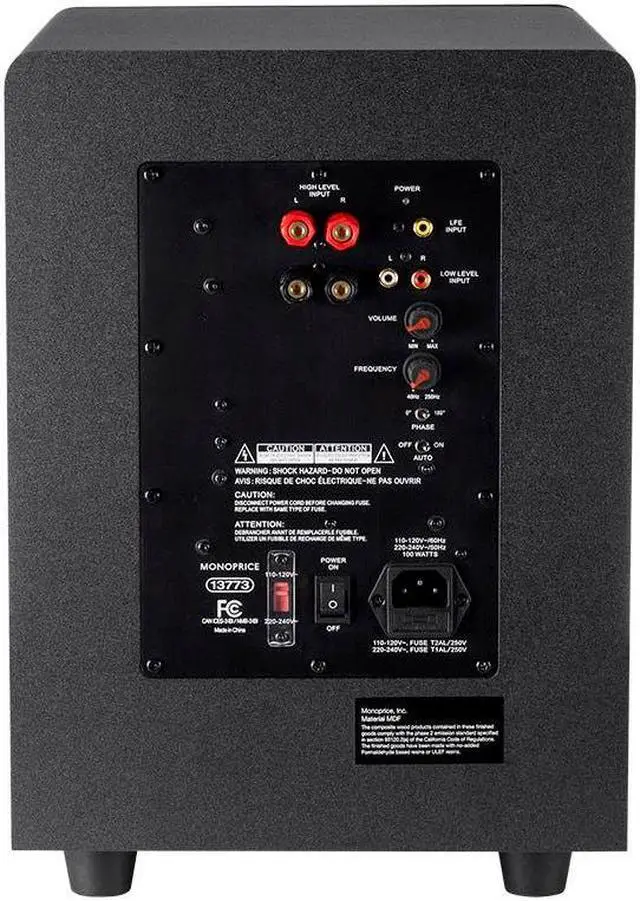 Three input options: dedicated LFE, line level stereo, and speaker level stereo Adjustable low-pass filter, volume, and phase controls Small footprint - only 10.6 inches x 12.8 inches. Note that this subwoofer is identical to the one included in our Premium Select 5.1 Channel Home Theater Satellite Speakers & Subwoofer (13773) system.