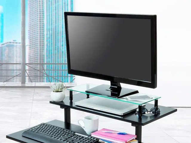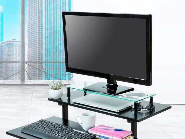 Raise your monitor to a comfortable height or add additional shelf space for improved ergonomics and convenience