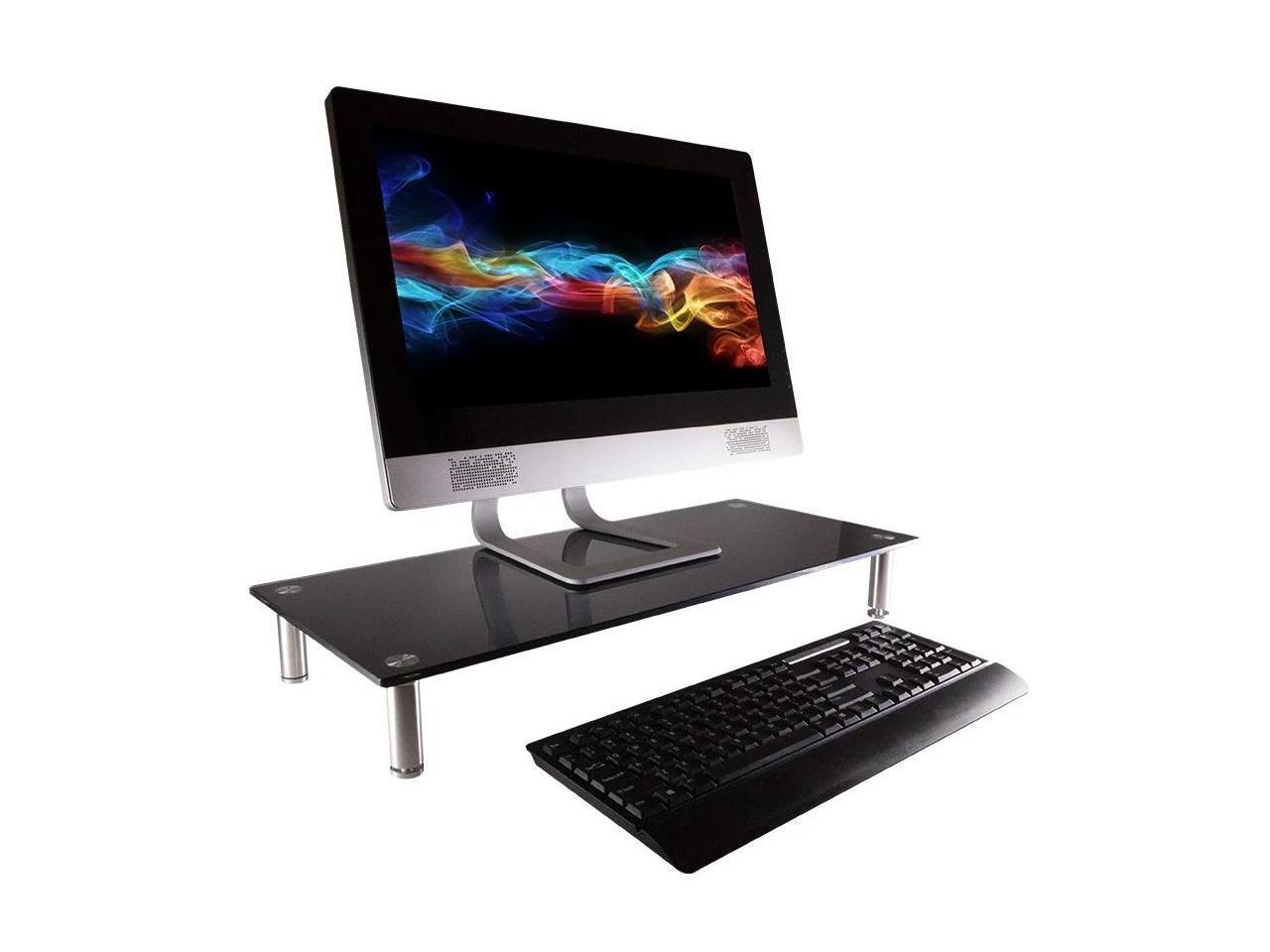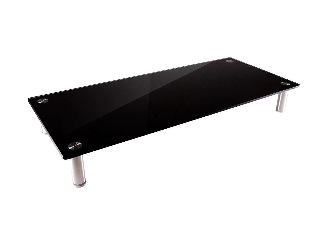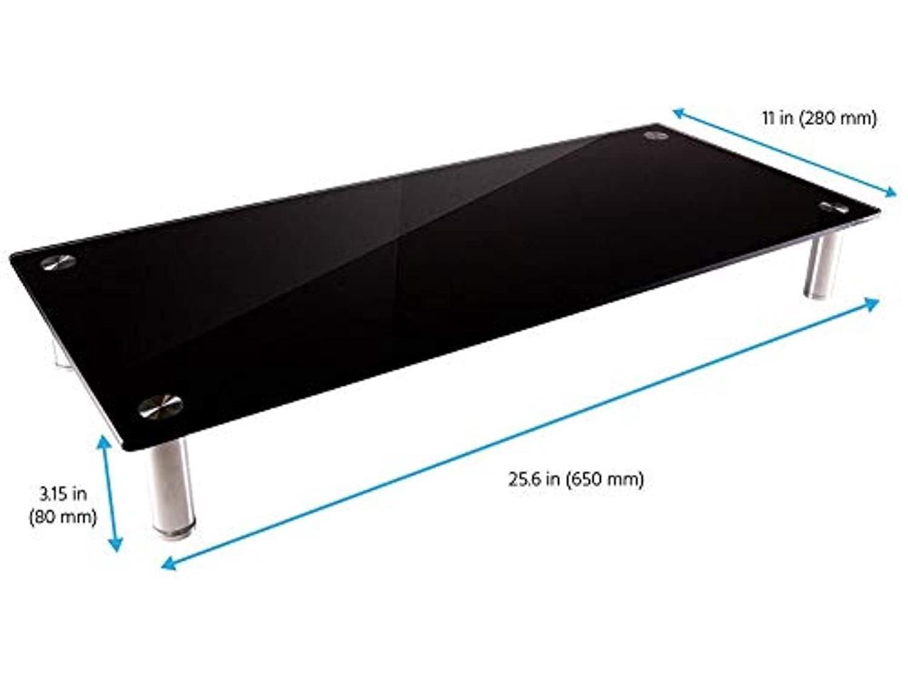 Monoprice Medium Multimedia Desktop Stand, Black Glass 25.6" x 11.0" - Stand & Riser, Desktop TV Stand, Dual Monitors w/ Height Adjustable Legs