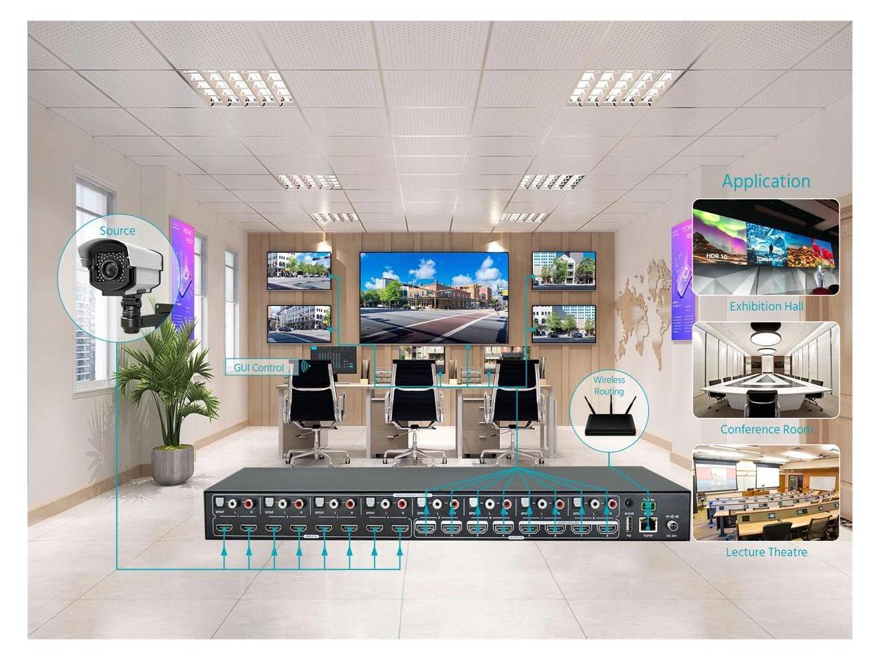 Monoprice Blackbird 4K 8x8 HDMI Matrix Switch with HDMI 2.0, Supports HDR, 18Gbps, 4K@60Hz YCbCr 4:4:4, 8 S/PDIF Outputs, HDCP 2.2