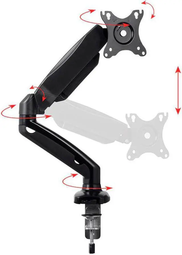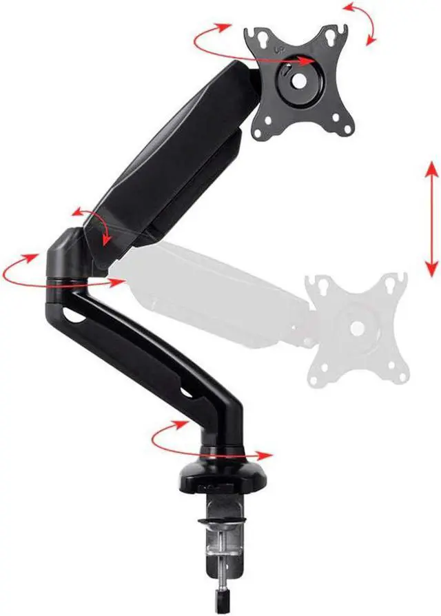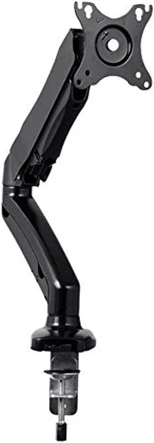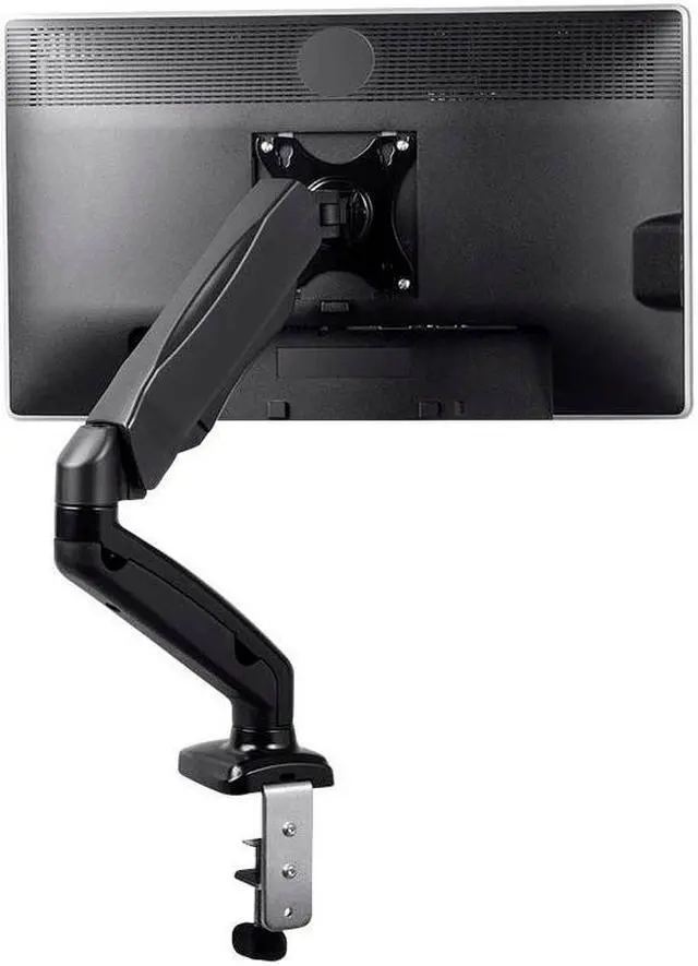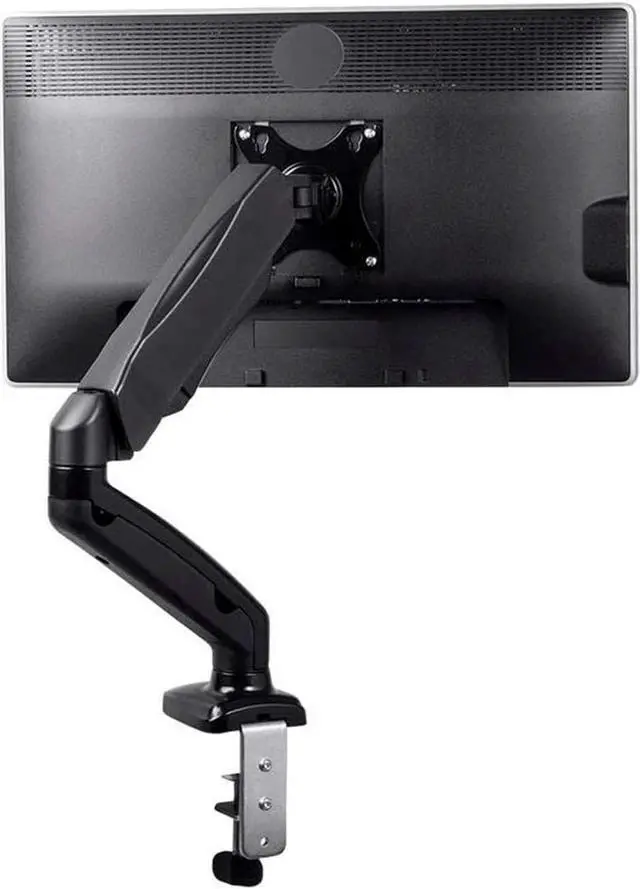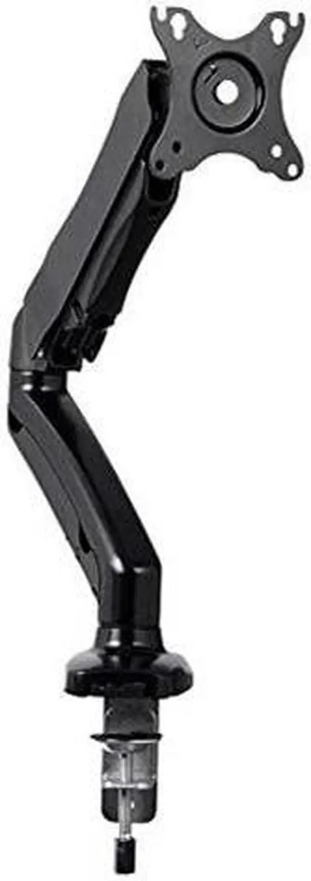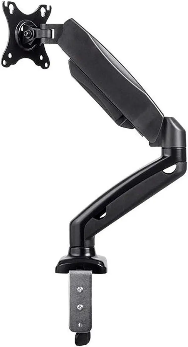 This Single-Monitor Gas-Spring Desk Mount provides fully adjustable mounting for smaller monitors with screen sizes up to 27". It is a smaller and lower-priced version of the best-selling Monoprice gas spring monitor mounts. The adjustable, articulating monitor arm allows for the most comfortable positioning of your LCD display to help reduce eye, neck, and shoulder strain.