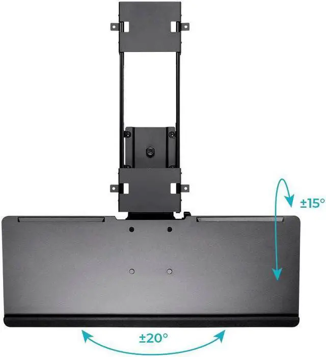 This adjustable keyboard tray provides ergonomic adjustability for keyboard and mouse placement, helping to create a better-fitting workstation. This provides better posture and placement options for people who otherwise can't make adjustments to their desks and workstations. This mount allows users to modify the height, tilt angle, and swivel position of their typing surface to help create a more comfortable and more productive work environment.