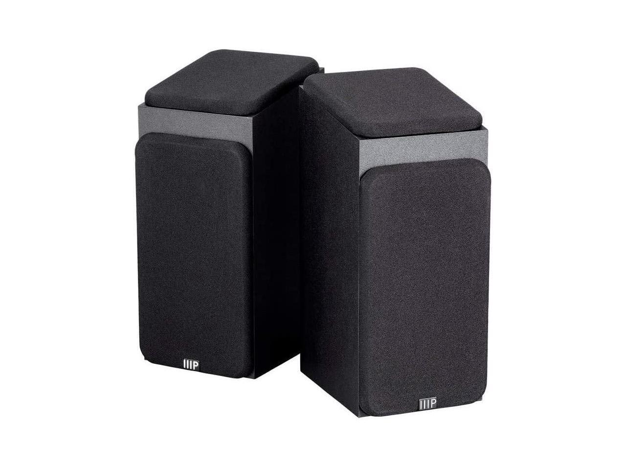 - IMMERSIVE SOUND The immersive, upward-firing driver adds a new dimension to movie soundtracks, making the sound come alive from all directions and creating a 3D space. The upward-firing driver projects sound towards the ceiling, with the ceiling reflecting the sound back down into the listening space. With this system there is no need to install in-ceiling speakers for height channels! This driver arrangement and connectivity is fully compatible with Dolby Atmos@enabled receivers and soundtracks|COMPACT SIZE These immersive satellite speakers measure just 4S x IOS x 53, weigh in at only 29 pounds eacrv and are equipped with a universal 1/4"x20 threaded insert mounts|TWEETER: 3/4" Aluminum Dome | WOOFER: 3" Polypropylene | INPUT POWER: 100 Watts | SENSITIVITY: 88 dB | IMMERSION HEIGHT DRIVER: 3" Polypropylene | IMPEDANCE: 80 | CONNECTORS: Binding Post | DIMENSIONS: 4.5" x 10.5" x 5.3".|Buy with Confidence: Monoprice not only stands behind every product we sell with a 1 year replacement