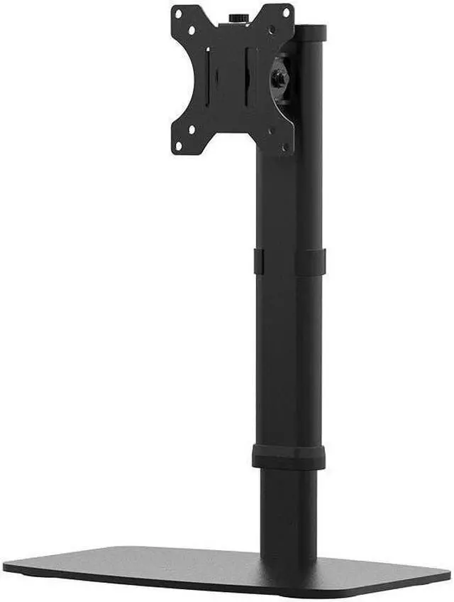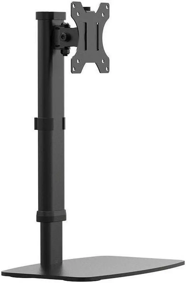 This free standing monitor mount features easy vertical height adjustment for computer displays. Instantly raise your monitor to add extra height, handy for changing positions throughout the day to stay comfortable. It is extra useful for use with sit-stand desks for quick monitor adjustments when you change desk height settings. Just lift your monitor upwards and the ratcheting mechanism automatically locks the height setting. No cumbersome screws or locks need to be set. To lower the monitor, raise it all the way up to unlock the ratchet to allow it to be lowered all the way down.