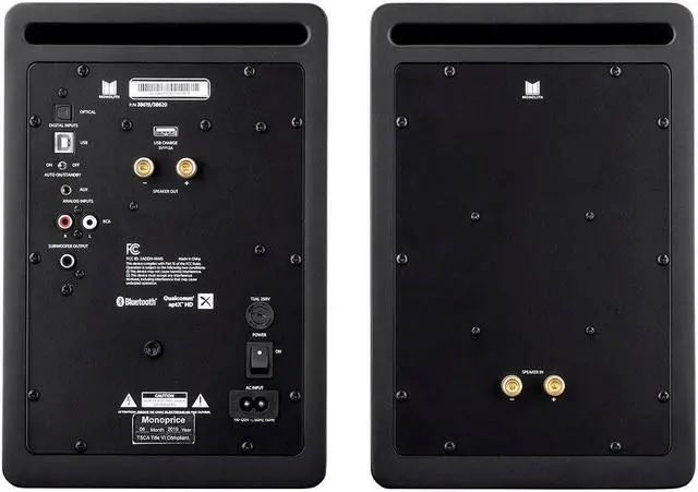The Monolith MM-5 Powered Multimedia Speakers deliver audiophile performance to your desktop! Compact and mighty, these speakers feature exceptional sonic clarity, punchy bass, and present a spacious musical soundstage. The multiple connection options include RCA and 3.5mm stereo analog inputs, optical S/PDIF and USB digital inputs, as well as a wireless connection using the Bluetooth radio with the Qualcomm aptX HD Audio codec. A headphone jack adorns the front, allowing you to easily switch between the speakers and headphones. The Monolith MM-5 powered multimedia speakers are a perfect, great sounding addition to a home office or bedroom.
