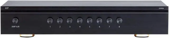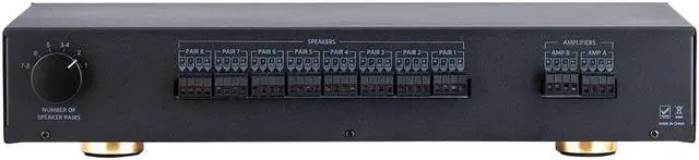 The Monoprice SS-Pro 8 is a powerful and efficient dual source, audiophile grade speaker selector for up to 8 pairs of speakers. Featuring robust transformers, the SS-Pro 8 allows you to play all 8 pairs of speakers at once without damaging the amplifier, able to withstand up to 300 watts peak of power per channel. A front panel A/B switch allows you to choose between two amplifier sources, and easily removeable snap in connectors make installation easy. A rotary switch located on the rear panel can be used to set the appropriate impedance based on the number of pair of speakers connected.