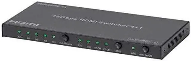 This Blackbird 4K 4x1 HDMI Switch allows you to connect up to four HDMI source devices to a single HDMI display. It supports video resolutions up to 4K@60Hz, including 1080p@60Hz and all 3D video modes. It can extract audio from the HDMI source to the combined 3.5 mm analog stereo/mini Toslink digital optical jack on the rear panel. It supports HDCP 2.2, EDID management, and is compliant with the HDMI 2.0 a standard, including support for the Audio Return Channel (ARC) feature.