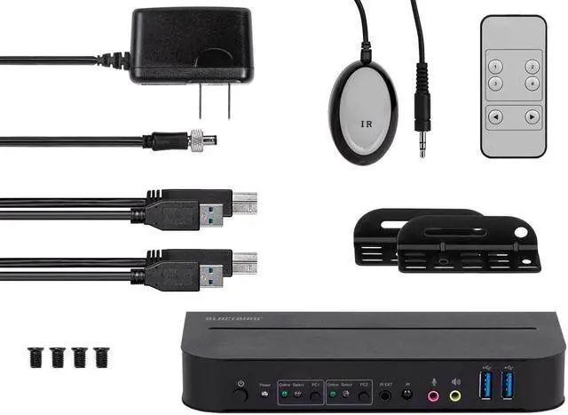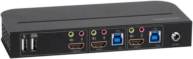The Blackbird 4K HDMI 2.0 and USB 3.0 2x1 KVM Switch allows you to control up to two computers using a single keyboard, mouse, and video display. It is compliant with the HDMI 2.0 specification, provides up to 18Gbps bandwidth, and supports resolutions up to 4K@60Hz with the YCbCr 4:4:4 color space.
