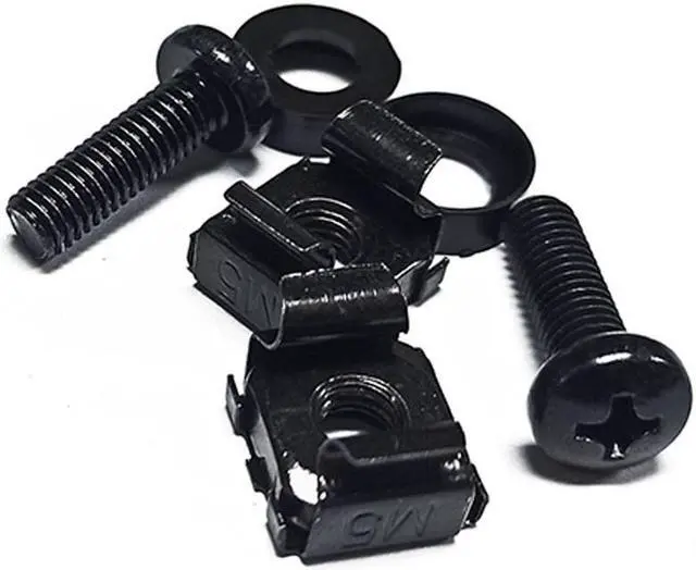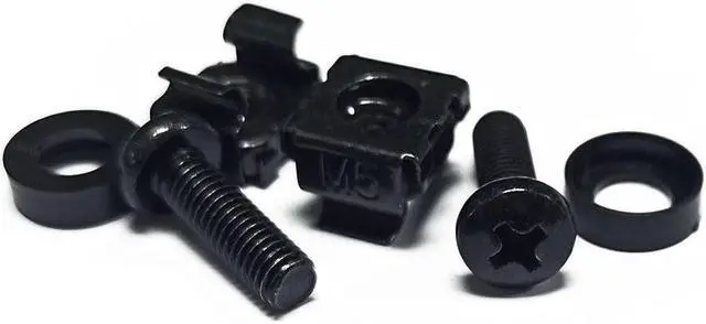 This high quality rackmount zinc plated cage nut hardware kit is for use with equipment/relay racks that are tapped with 12/24 universal square hole rails, allowing you to mount standard rack mountable equipment into a server rack or cabinet. Each order includes 50 count of nuts, screws, and washers.