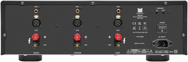 Monolith M3100X 3x90 Watts Per Channel Multi-Channel Home Theater Power Amplifier with RCA & XLR Inputs
