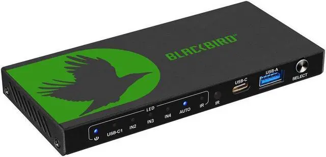 This switcher accommodates a wide range of devices with three inputs for HDMI and one input for USB-C. Compatible with Thunderbolt 3 and DP 1.4 Alt Mode for USB-C input, allowing seamless device integration.