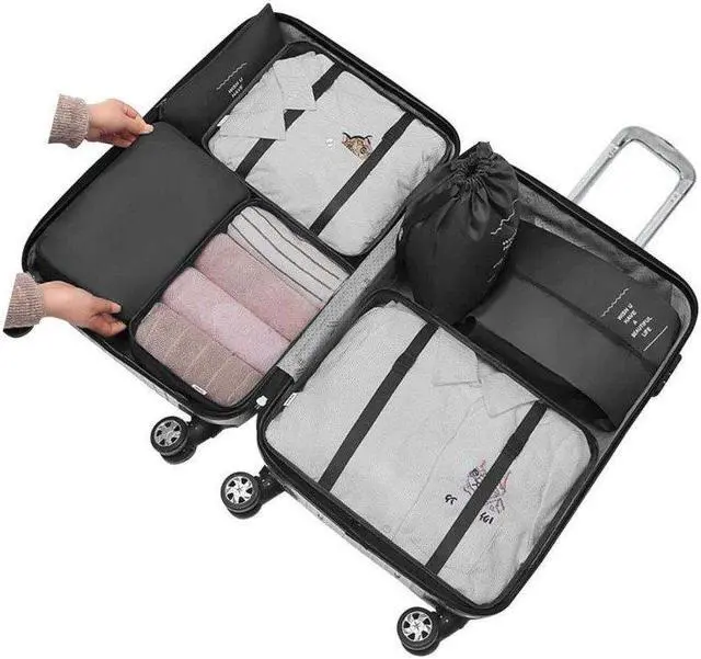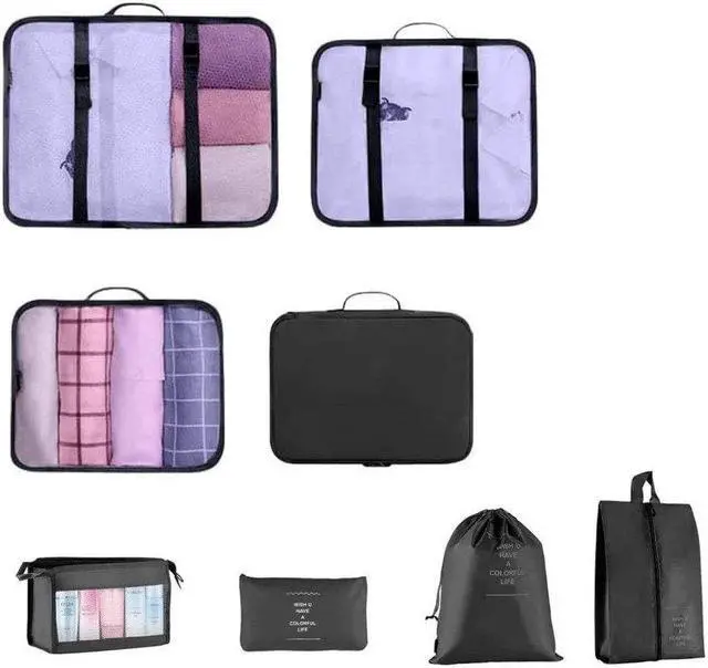 This packing cube set is a perfect travel accessory organized and compactly pack your clothing, and other travel essentials inside a suitcase or travel bag. It helps in utilizing your interior luggage space and keeps closet organized. Fit perfectly in most luggage. Packing cubes are not limited to clothing only, it can also be used to pack cables, electronics, makeup, toiletries, and other travel essentials.