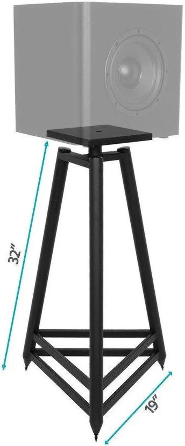 The Monolith Easel Style Speaker Stand is an elegant and aesthetically pleasing stand for your home entertainment system. Each stand features sturdy steel tube construction for maximum stability, and is powder coated for an attractive, pleasing appearance. Isolate your speakers from unwanted resonances by filling the hollow tubes with either sand, kitty litter, or lead shot. The speaker stand comes supplied with adjustable spikes, allowing it to pierce through your carpet to further isolate from floor vibrations. An adjustable top plate made of MDF ensures you can align and display your speakers at any angle or position you need.
