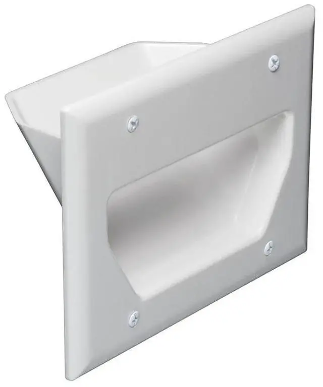Specifically engineered to fit standard threegang boxes, this plate is a versatile choice for larger cable management needs. Its recessed design allows cables to be routed through the wall directly to your devices without protruding plugs or bulky connectors. Whether youre running HDMI cables to a flatpanel TV, audio cables to a receiver, or Ethernet lines for a stable internet connection, the 3Gang Recessed LowVoltage Cable Plate keeps all your wiring securely and neatly organized.