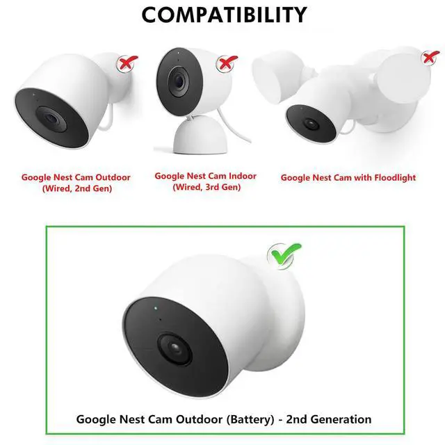 - ONLY compatible with Google Nest Cam Outdoor or Indoor, Battery - 2nd Generation, NOT FOR Nest wire cam and etc.