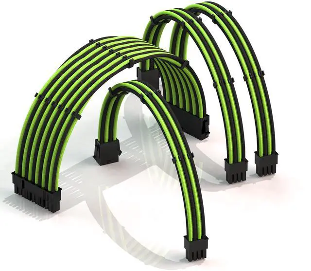 • 1 x CPU & 2 x GPU1 x 4+4-Pin CPU power cables and 2 x 6+2-Pin GPU power cables bundled in one package. Suitable for new CPU & GPU. Also includes 24-Pin motherboard power cable; VividMod your build with 17 unique color options in 30cm and 50cm variations