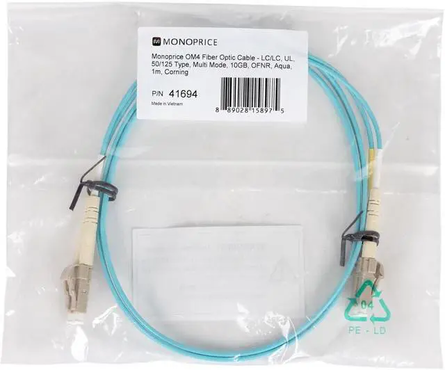 This UL listed 50/125um OM4 fiber optic cable features an extremely high bandwidth, making it suitable for high-throughput enterprise networks, telecomm rooms, server farms, and cloud storage network applications. It is ideal for connecting 10G SR, 10G LRM, SFP+ transceivers, etc. for 10G/40G/100G Ethernet connections. It supports 10GB to 400 meters and 40G/100GB to 100 meters and is fully (backwards) compatible with 50/125. These OM4 cables provide longer connection lengths than OM3 cables.