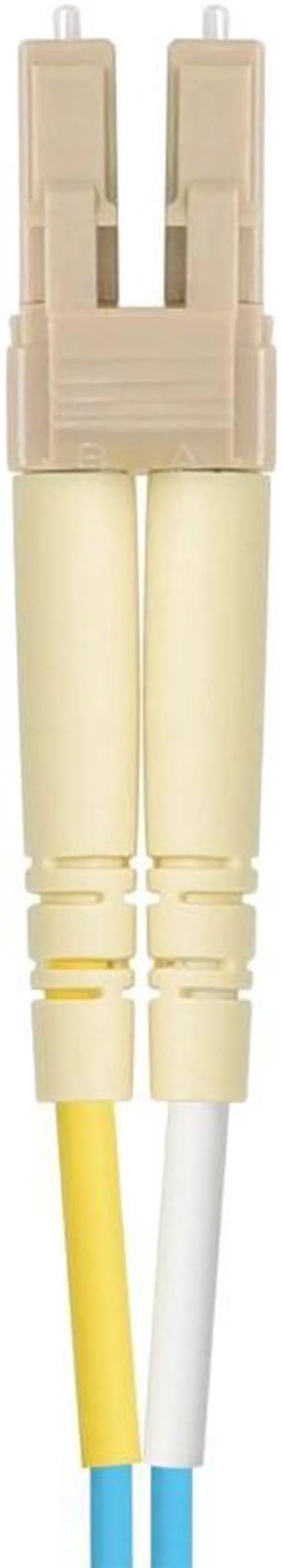 This UL listed 50/125um OM4 fiber optic cable features an extremely high bandwidth, making it suitable for high-throughput enterprise networks, telecomm rooms, server farms, and cloud storage network applications. It is ideal for connecting 10G SR, 10G LRM, SFP+ transceivers, etc. for 10G/40G/100G Ethernet connections. It supports 10GB to 400 meters and 40G/100GB to 100 meters and is fully (backwards) compatible with 50/125. These OM4 cables provide longer connection lengths than OM3 cables.