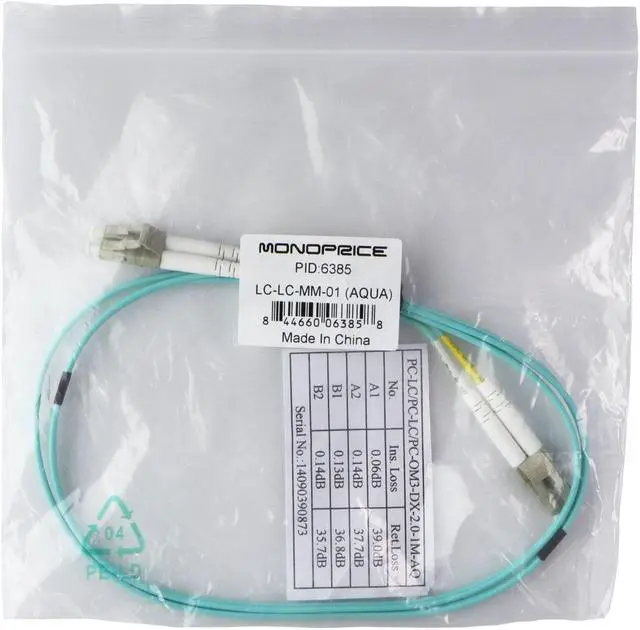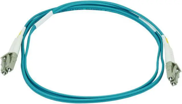Fiber Optic Patch Cord, Single Mode/Multi-Mode Multi-Mode, Simplex/Duplex/Multifiber Duplex, Connector Type - Patch Cord LC, LC, Fire Rating - Data Cable Riser, Jacket Color Aqua, Length - Patch Cord 1.0 m, Fiber Count 2, Core Dimension 50.0 Micrometer, Jacket Material - Wire and Cable PVC, NEC Article and Type OFNR, Clad Dimension 125 Micrometer, Bandwidth 10 GB