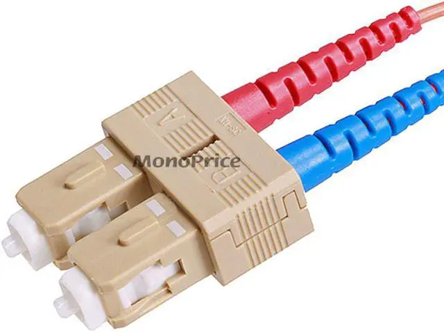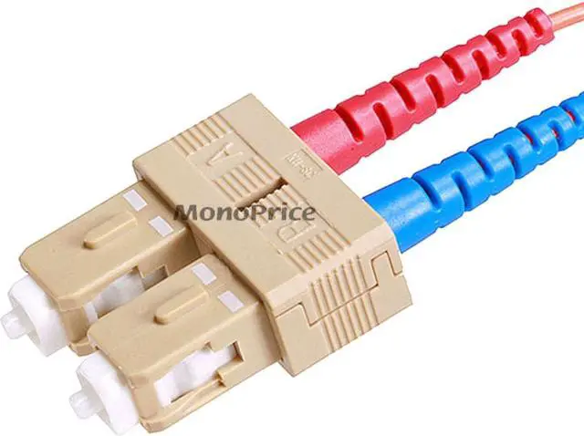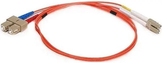 Because of its immunity to electronic interference and its greater speeds over longer distances, fiber optic cabling has become the conduit of choice for high speed network communications. Monoprice is proud to offer a full line of high-quality Single-mode and Multi-mode duplex cables using optical fibers made by Corning. This is an OM1 "Orange" multi-mode cable with a 62.5 m core and 125 m cladding diameter. The cable has a color-coded Dual LC connector on one end and a Dual SC connector on the other end. The cable jacket is OFNR (Optical Fiber, Non-conductive, Riser) rated by UL, which means that it complies with fire safety and insurance requirements and is safe for use within the walls, and between the floors, of commercial class buildings.
