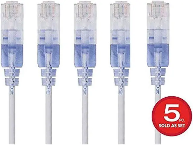 Monoprice Cat6A Ethernet Network Patch Cable - 20 Feet - White | 5-Pack, 10G - SlimRun Series