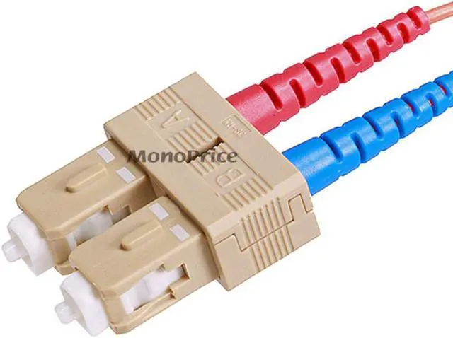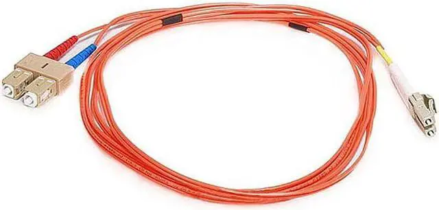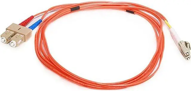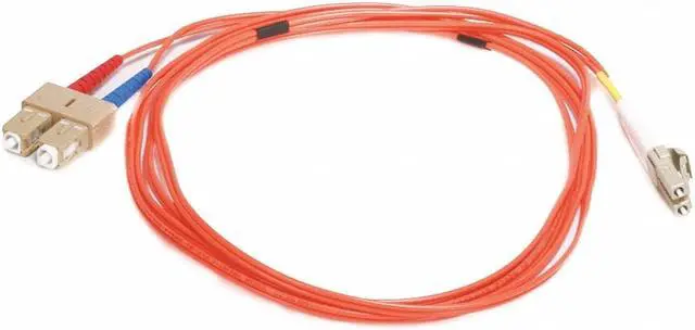 Because of its immunity to electronic interference and its greater speeds over longer distances, fiber optic cabling has become the conduit of choice for high speed network communications. Monoprice is proud to offer a full line of high-quality Single-mode and Multi-mode duplex cables using optical fibers made by Corning. This is an OM1 "Orange" multi-mode cable with a 62.5 m core and 125 m cladding diameter. The cable has a color-coded Dual LC connector on one end and a Dual SC connector on the other end. The cable jacket is OFNR (Optical Fiber, Non-conductive, Riser) rated by UL, which means that it complies with fire safety and insurance requirements and is safe for use within the walls, and between the floors, of commercial class buildings.