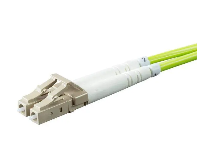 Buy with Confidence: With Monoprice's Lifetime Warranty on all Cables, you can rest assured we stand behind our products and our customers.|This is an OM5 "Green" laser-optimized, multi-mode cable with a 50 m core and 125 m cladding diameter.|The cable has a color-coded Dual LC connector on each end and is ideal for use in 10 Gigabit Ethernet (GbE) networks.|The cable jacket is OFNR (Optical Fiber, Non-conductive, Riser) rated by UL, which means that it complies with fire safety and insurance requirements and is safe for use within the walls, and between the floors, of commercial class buildings.
