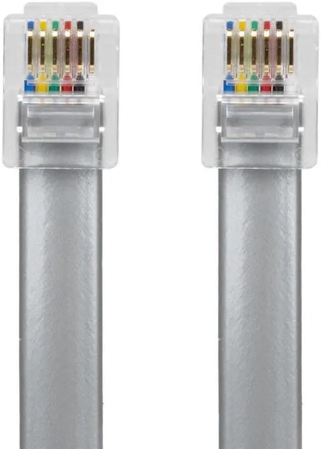 Telephone patch cable. Replace shorter cables with this extended length cable. Reserve wire connections for voice lines. Reverse cables reverse the right to left order of the pins inside the connectors. Flat Cable BodySilver Satin Color6 ConductorsRJ12 Connectors*Monoprice continually strives to improve its product line to bring our customers the best products available. Therefore, changes may be made to listed specifications without prior notice. Item received may not match photo or specs shown.