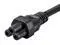 This is a 3-conductor (grounded) AC power cord designed for use with switched-mode power supplies, such as those used for laptop computers, monitors, etc. It features a standard 3-prong US-style NEMA 5-15 plug at one end and an IEC 60320 C5 plug, also known as a cloverleaf or Mickey Mouse plug, at the other end.