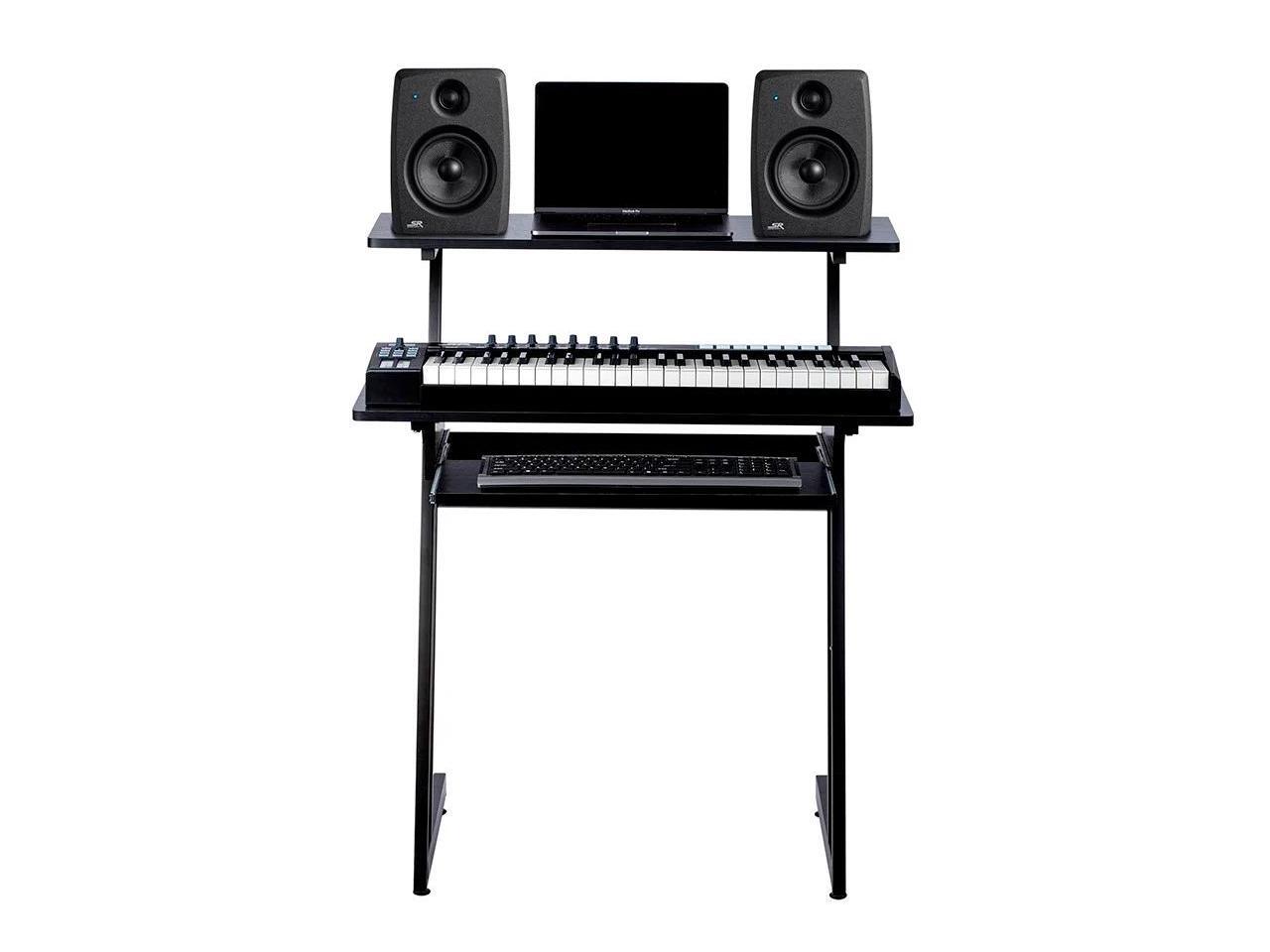 Monoprice Recording Studio Desk with Raised Platform and Keyboard Tray, Studio Workstation, Stable & Lightweight, For Home Studio - Stage Right Series